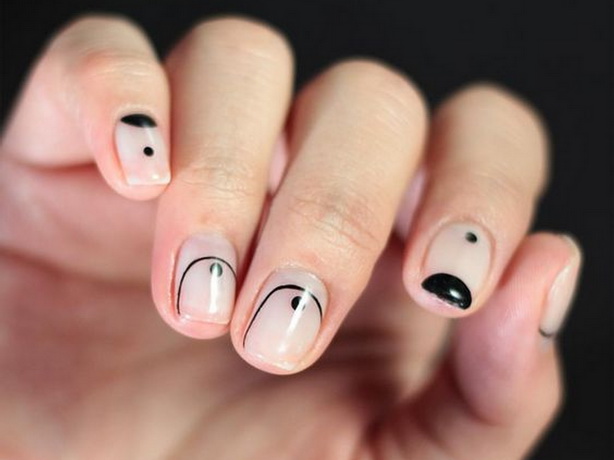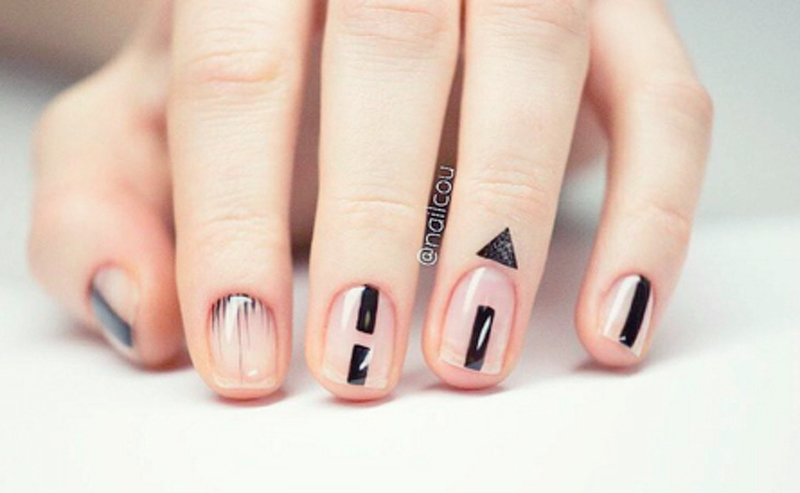 The Negative Space technique is different in that part of the nail is not varnished. The natural color of the nail plate peeps between the colored areas. Such drawings on the hands of a young girl look quite organic.