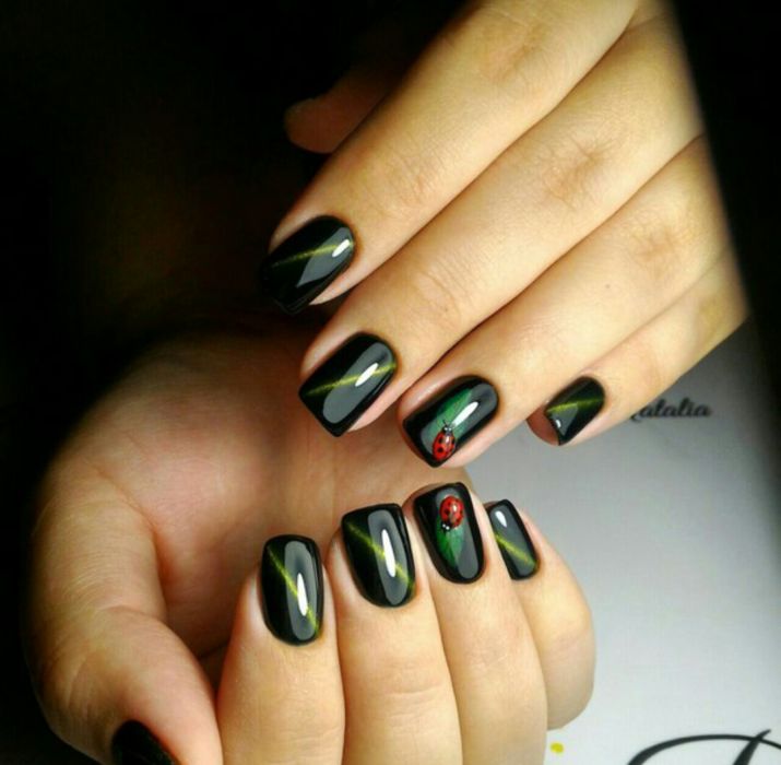 But during the school year it is worth observing some rules; a summer manicure may differ in color experiments.So, for the summer the bright varnish of an unusual shade with prints will be an ideal choice.