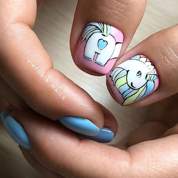 Cool manicure is the best for teen design. Everyone loves animals, cats, owls. Such nails will not go unnoticed. It is better to put a picture on one or two fingers, most often for this purpose they choose middle and ring fingers.