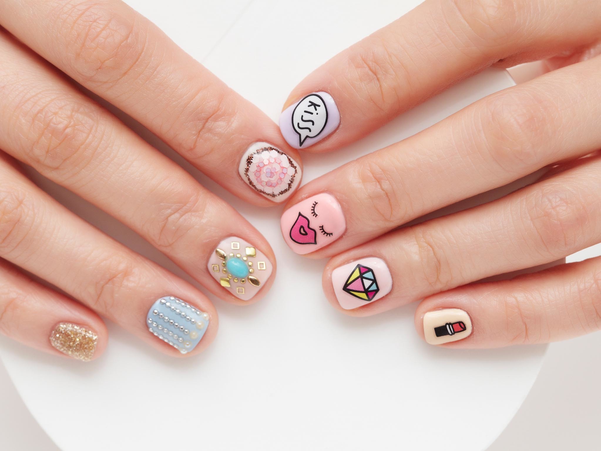 Any 16-17-year-old girl can experiment with color, texture, elements., using numerous patterns, rhinestones, letters, stripes, dots, small flower buds and other images. You can realize the most incredible ideas, use unexpected combinations to decorate. These may not be images of girls: guns, airplanes, stylized trains. A great solution for a teenager is to learn how to make such coverage yourself.