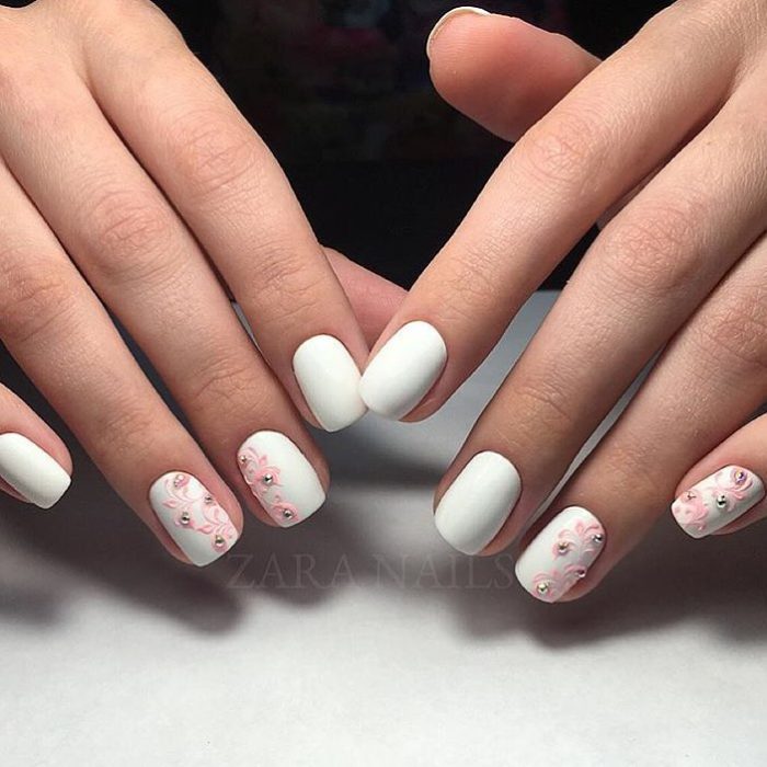 New nail design - white manicure. The classic version has become a novelty of the season due to the use of a special application technique. White color with all its versatility can be elegant, and exquisite, and mysterious. The main matte coating allows you to combine various options, colors, shades. This design is simple and original at the same time - it all depends on the details. Can be used at any time for any image, even as an option for the prom.