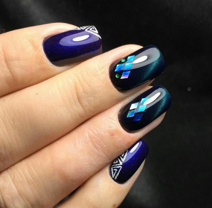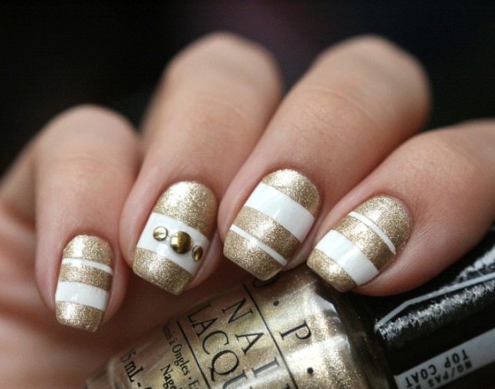 The use of strips in the design visually makes nails thinner and sleeker. Geometric and graphic drawings are always popular. It is not necessary to be a gifted artist, if you wish, you can always use special stencils.