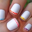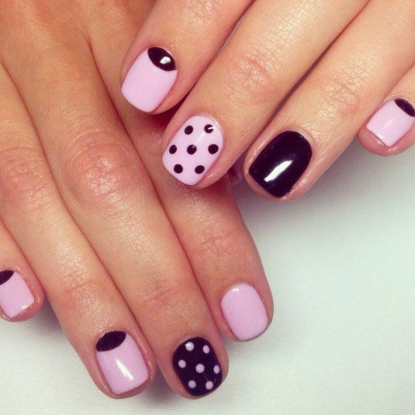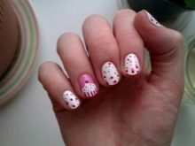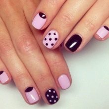 - Laconic solution in the lunar technique using dots for making peas on accent nail plates.