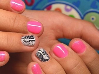 Despite the fact that a number of limitations in the design of a children's manicure exists, in its implementation it is worth referring to fashion trends that are outstanding for the modern design. For example, today it is not customary to decorate all the nails of the hands with identical patterns. This is considered too simple and outdated. Older girls understand this, and therefore they are more often asked to give them a manicure with accents.