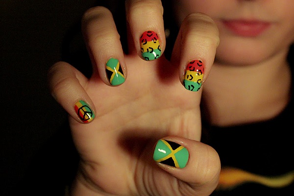 - Teenage jacket with a fancy smile on the accent nail of the hand.