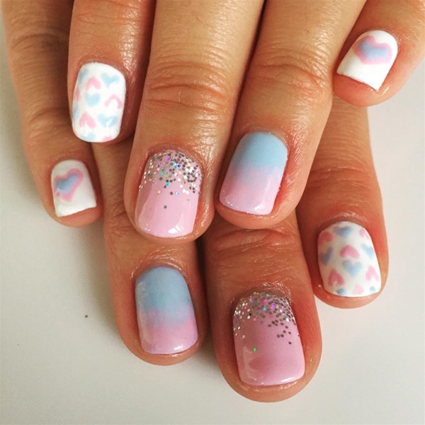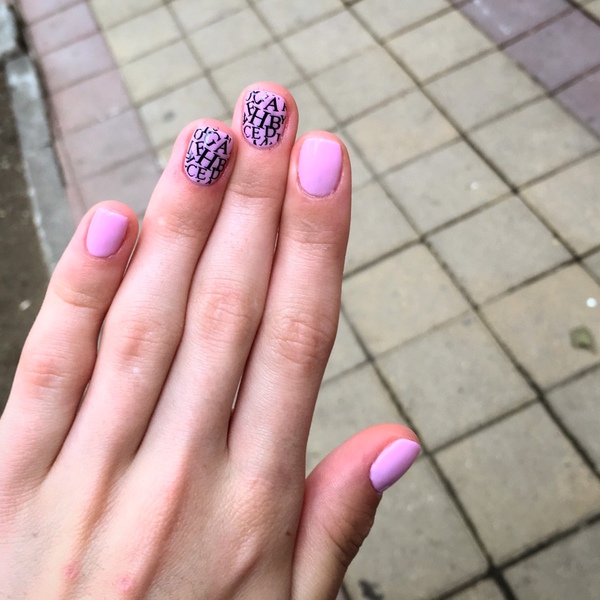 - Making short nails with accent nails of the ring fingers slider design.