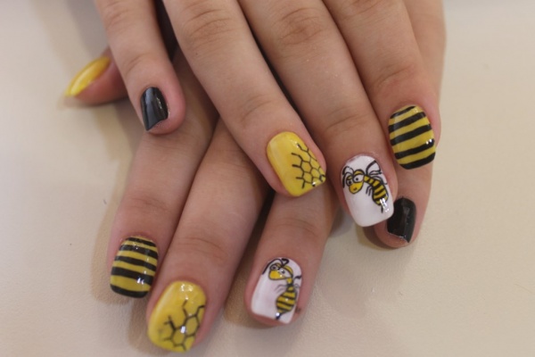 - An unusual version of the design of nails with bees, which will be appreciated by every young fashionista.