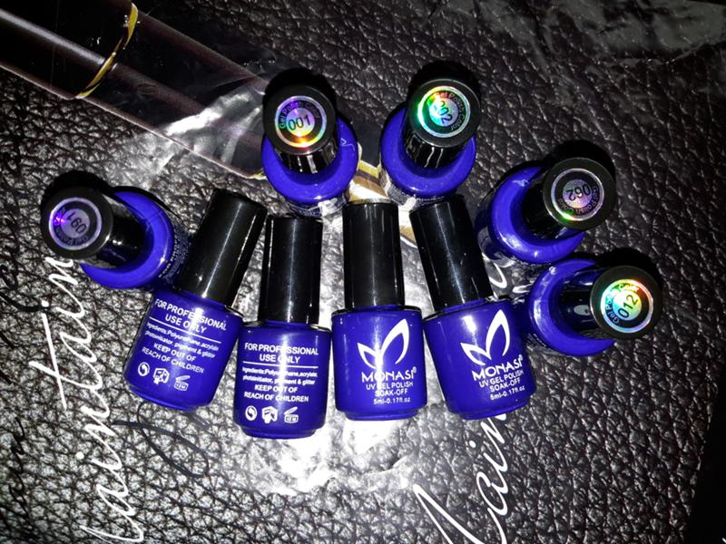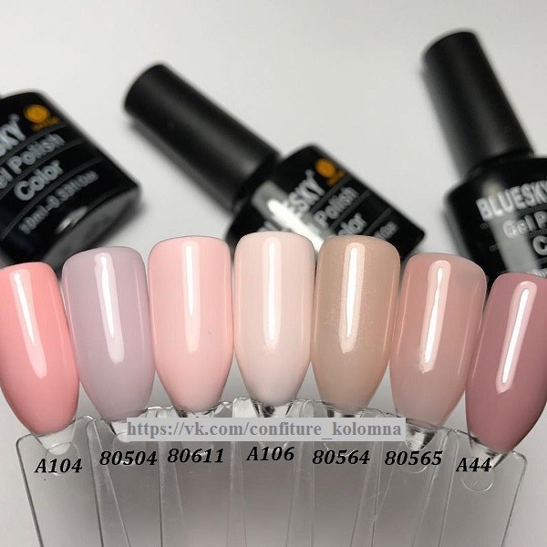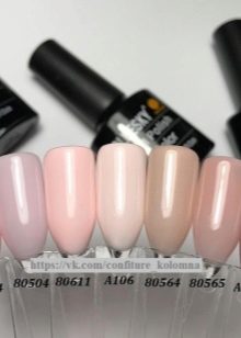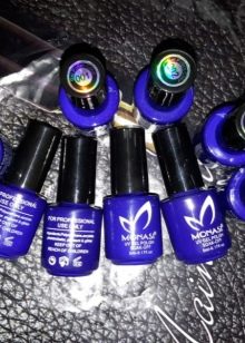 - gel varnishes of blue, black, white and nude shades;