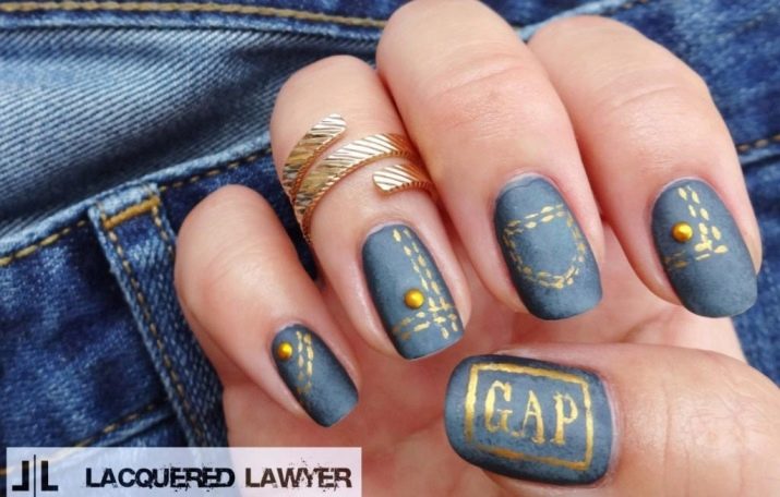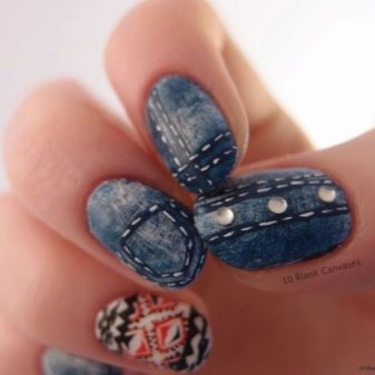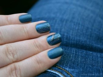 For fans of rhinestones: this decor can also be used. On jeans, too, you can often find such elements. But here, the main thing is not to overdo it. Still, denim manicure should not be too glamorous.