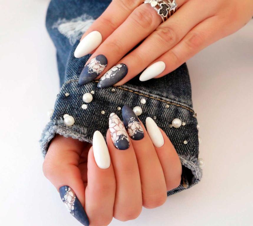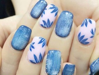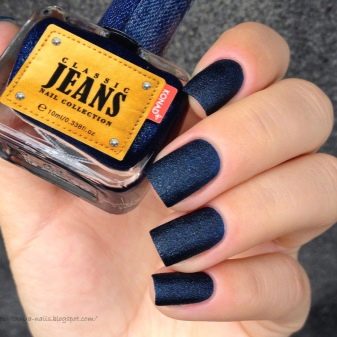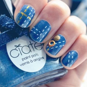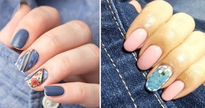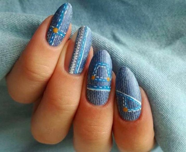 Denim manicure can be chosen for any shape and length of nails. Here, the main thing is to make the right choice in favor of the shade of the fabric that you will imitate on your hands. So, dark shades are suitable for short square-shaped marigolds. A drawing of the longitudinal pattern is visually able to stretch the length of the nail plate. Long nails allow to use various shades of blue, the ornaments in this case can be located in any plane. This in no case will not make the shape of the nails absurd.
