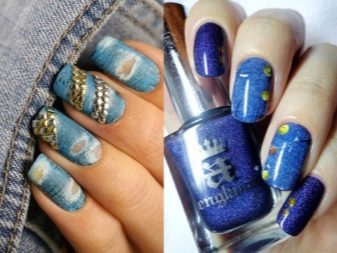 For the design of manicure "under jeans" should be used decor, which can be found on these jeans. All kinds of riveting, metal circles and triangles - all this can be easily used.