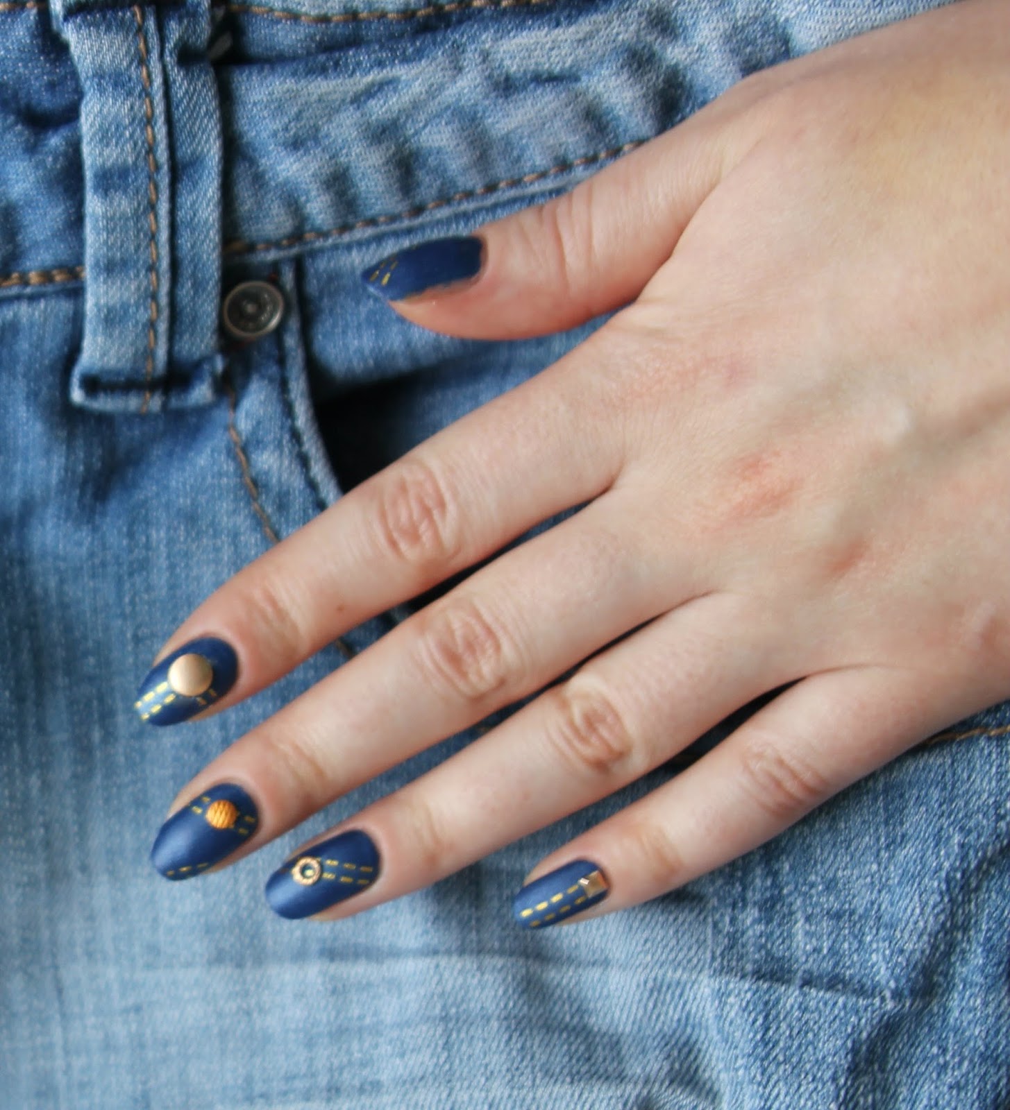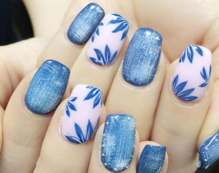 Below is a step-by-step instruction on how to create a denim design on your nails at home.