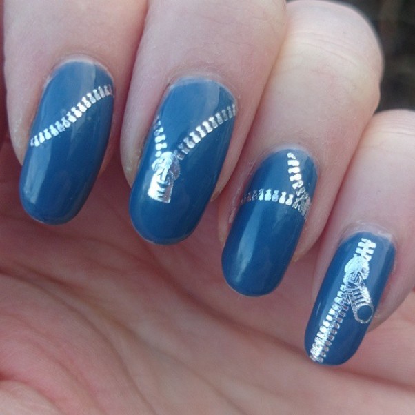 - For romantic persons, the denim design can be diluted with a soft pink lacquer, or you can insert a colored lining into the zipper slit on denim nails.