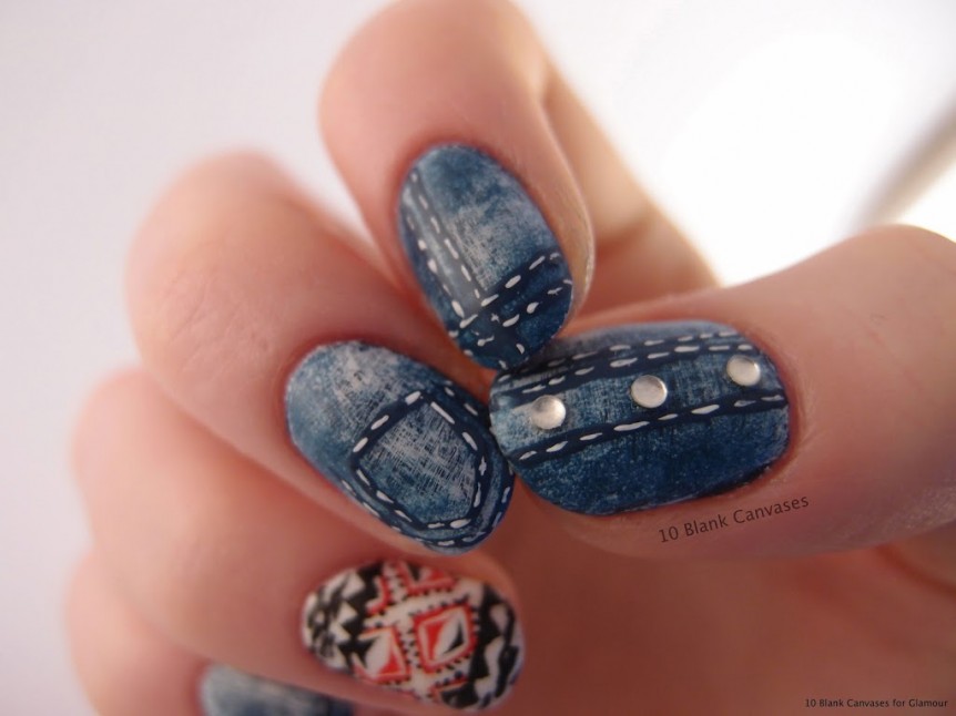 To play the denim design on the nails, you will need the following tools: