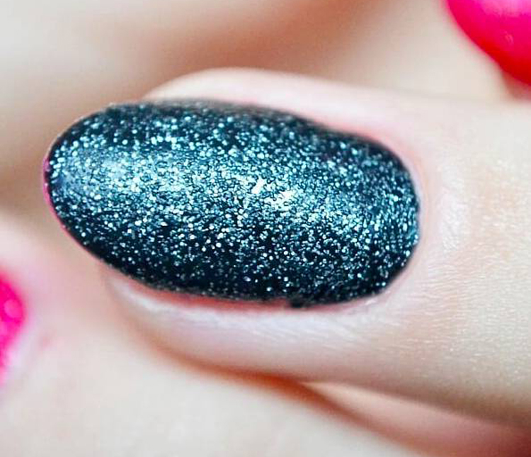 - With the help of a silicone stamp we transfer the texture of the fabric to the nail.