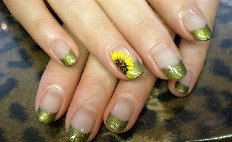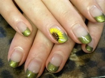 - Flowers as an accent. In this case, the color images are used instead of the accent strip on the end of the nail. Drawings can be applied in one or several shades.