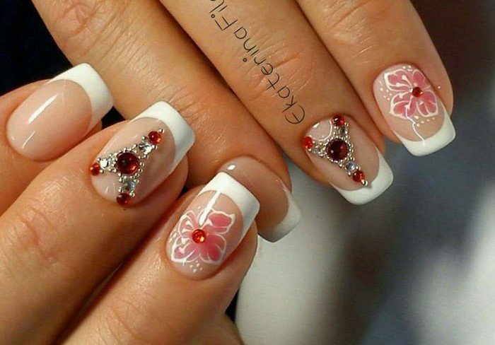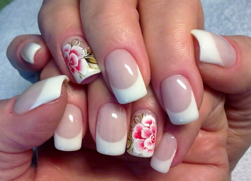 Since the French manicure with a floral print is quite a popular option today for the design of nails, which is in demand among girls and women of any age, nail service masters offer many options for its execution. Consider the most interesting of them.