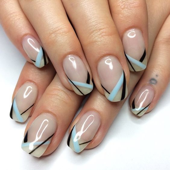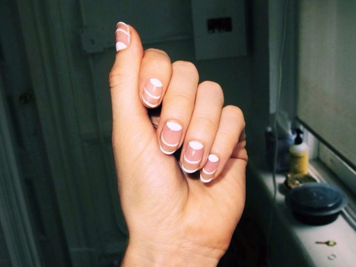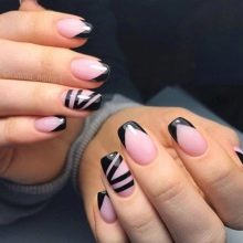 Geometric patterns - the trend of recent years. Particularly popular now are strips of different lengths and widths. French can be varied by changing the width or shape of the rim of the nail plate, its color or texture.