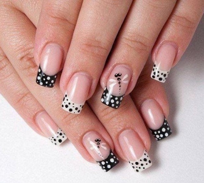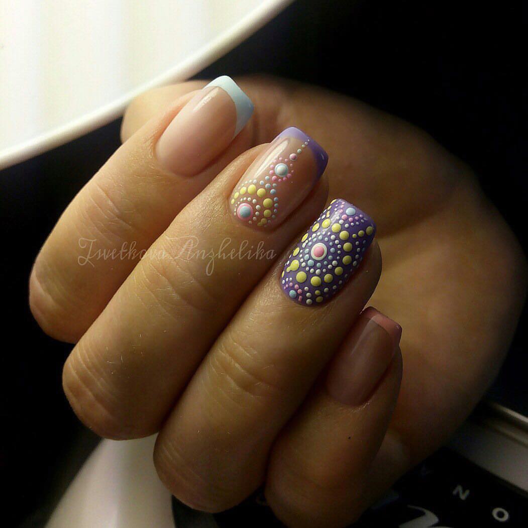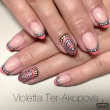 Often the points are used when making manicure in the style of casual or ethno. The drawing is carried out by dots, applying it either on the edge of the nail, or in the region of the hole. Also with the help of points you can enclose the nail plate in the frame.