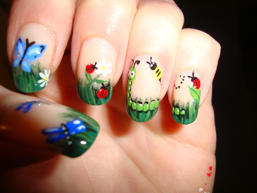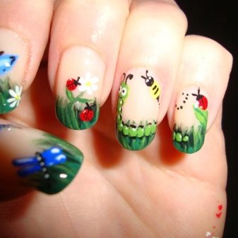 - Flora and fauna. Summer manicure is replete with a lighter design with butterflies, flowers, trees, animals and birds. The figures are performed in different techniques. It is not necessary to draw an exact copy, you can only scheme or drawing in the form of "origami".