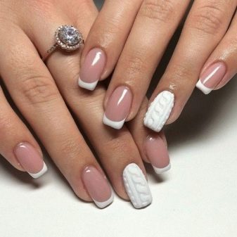 White manicure is considered a classic version of the jacket. For lovers of accuracy and simplicity, white edging on a pastel base is ideal. Modern materials allow to diversify the white jacket with various decorative elements, which creates volume, brings interesting notes to the image.