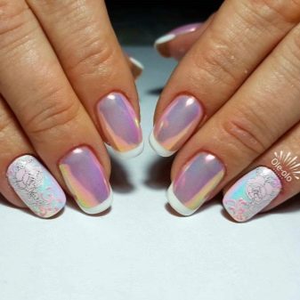 To design the tip of the nail using various techniques, for example, "broken glass". Its mirror shine will amaze everyone at any gala event and will not leave its owner unattended.