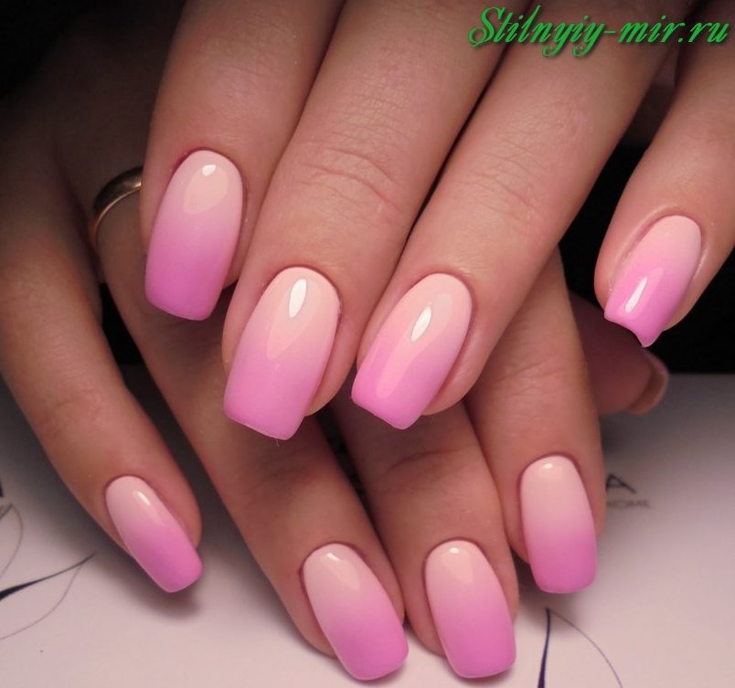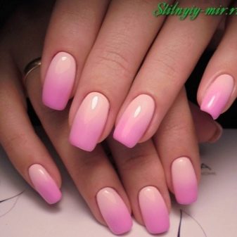 - Ombre effect. Fantasy transitions saturated colors on the edge of the nail look amazing.
