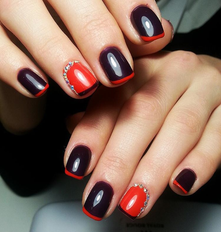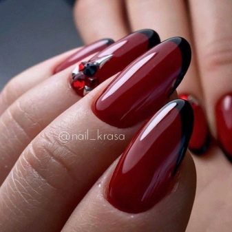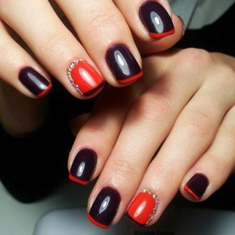 - Contrasts with dark, for example, black, burgundy, coffee, chocolate, eggplant, dark green. The nuance of such a manicure is that it is necessary to correctly combine the colors, otherwise there is a risk of getting bad taste.