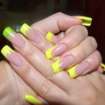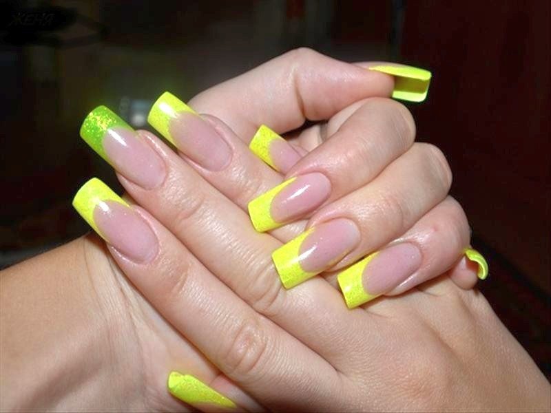 - Acid shades. These colors are very fond of young girls, because they are unusual. It should be noted that they can not cover the entire nail, only to make accents in the manicure. When forming a french enough to highlight the nail edge or hole.