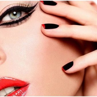 Black manicure has long ceased to be an element of mysticism and black magic. Now he looks stylish, spectacular and elegant. Black color is universal, combined with any shades, so it is easy for him to find a companion.