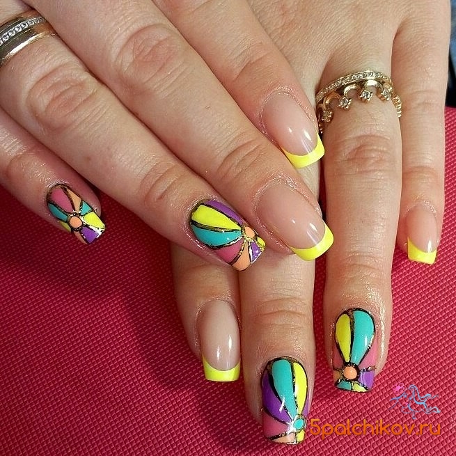 Now french takes the first places in the rating of nail art. He became more creative and original due to the use of bright colors and a variety of used drawings.