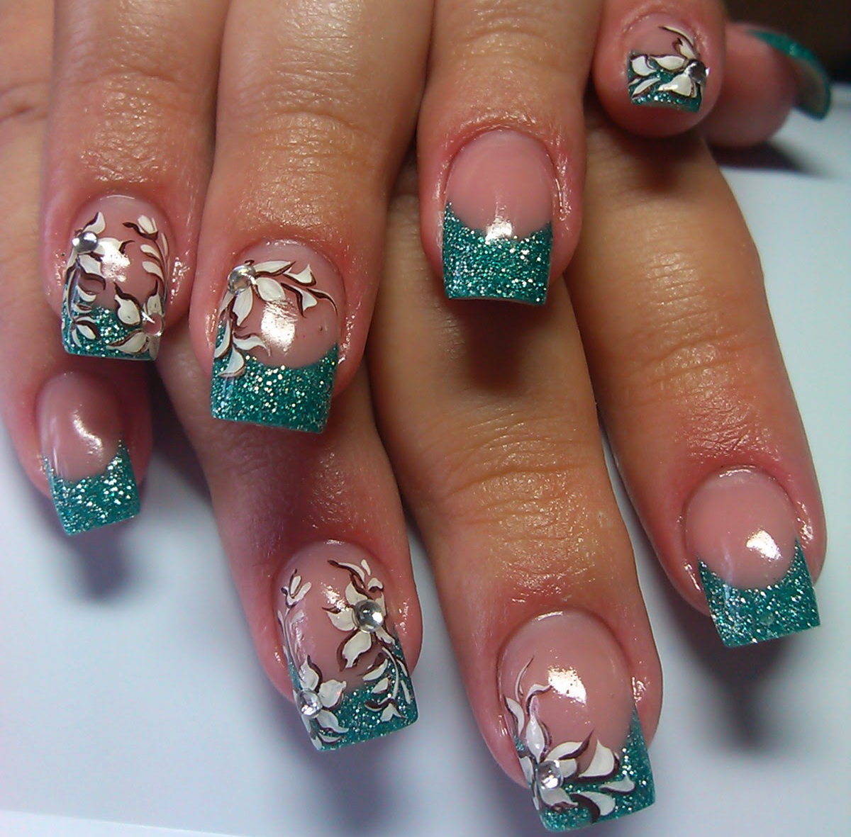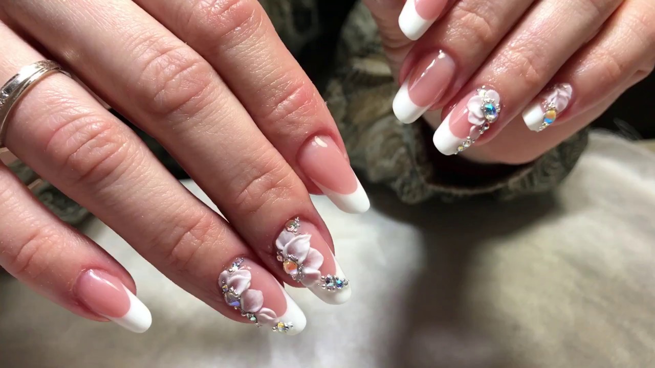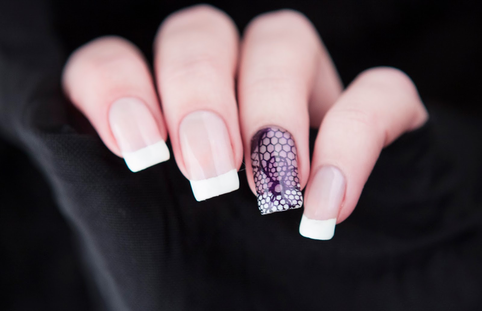 For the French manicure, choose either a small floral print that can be applied to all the nails, or one large pattern on one finger.