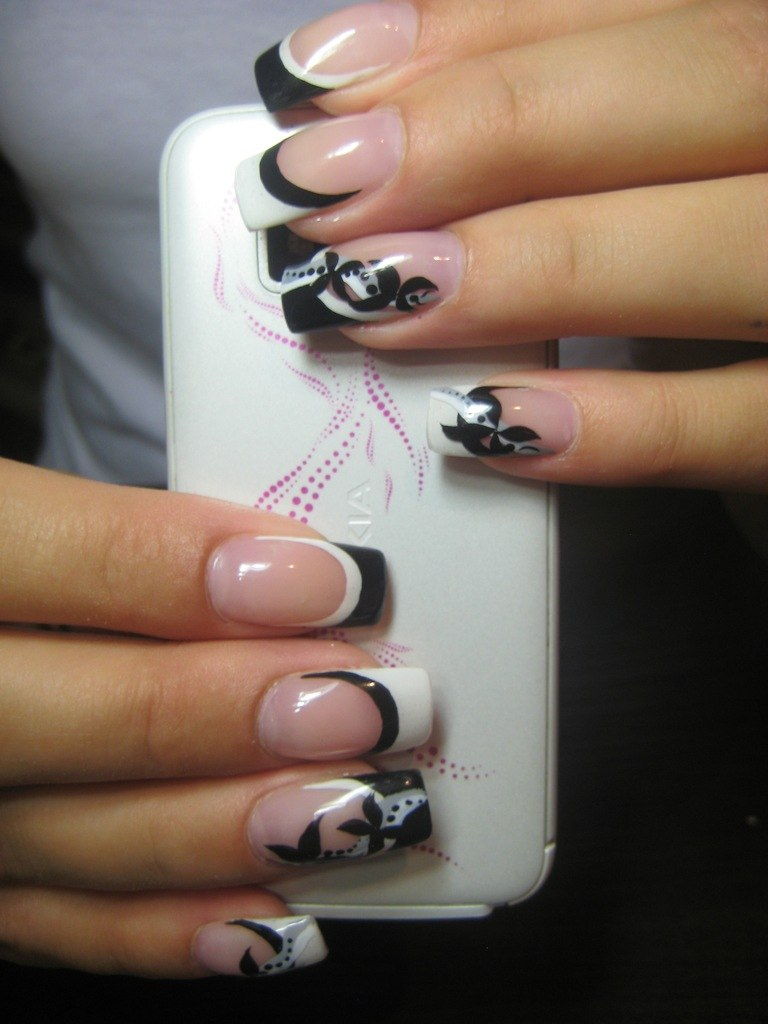 Black with white is suitable for business style. Moreover, if a black background with a white edge looks brighter, then a black smile on a white or beige base is already a more calm, discreet version.