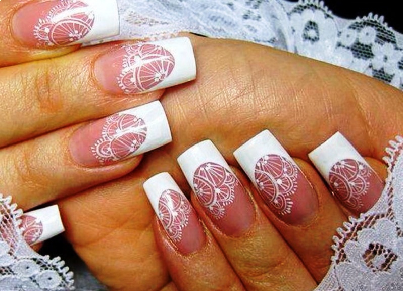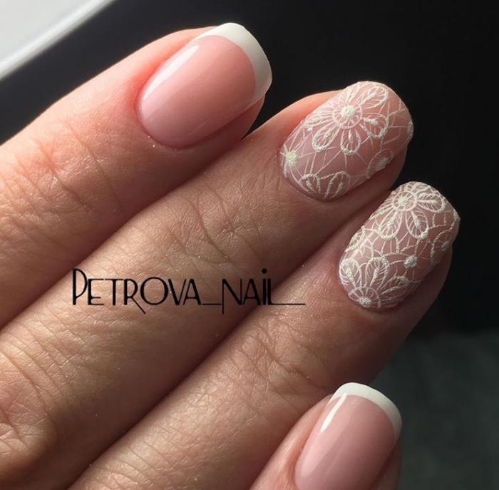 Openwork patterns organically fit into the design of the French manicure. Lace in any color look elegant, complementing and decorating it.