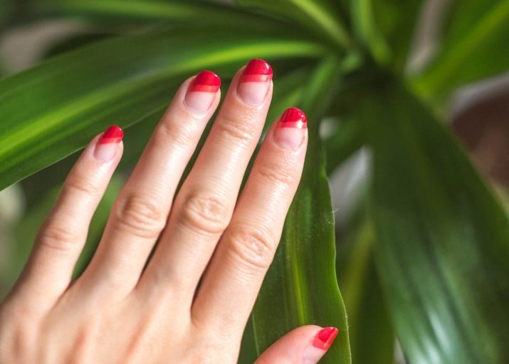 - Design “negative space” with unpainted space. In this case, the color lacquer contrasts with the natural shade of the nail plate.