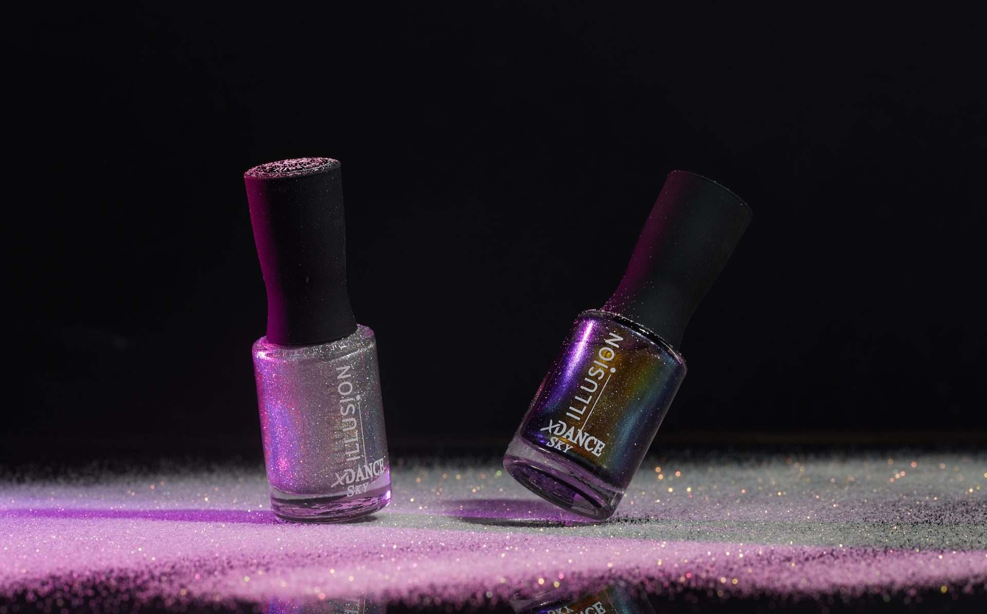 - Holographic varnish has an interesting property to change its shade - that is why many manufacturers of varnishes make a note with the inscription "chameleon". A similar effect can be noticed when changing the ambient light. Varnish intensity and color can change dramatically. For example, a holographic lacquer, the predominant color of which is green, with different lighting can become turquoise or saturated blue.