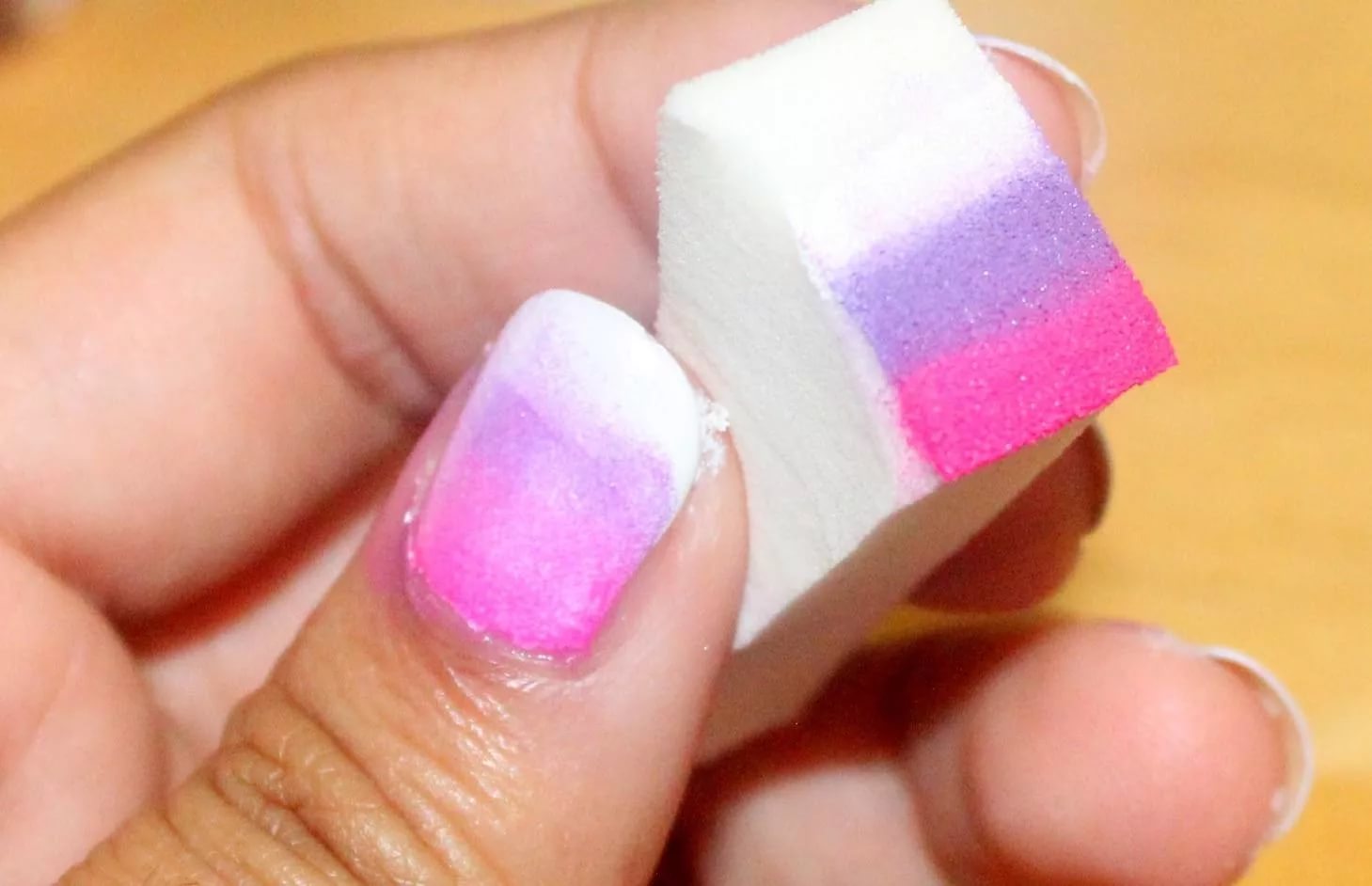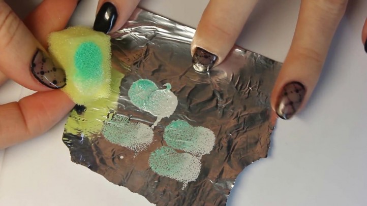 In order to apply a gradient on your nails using sponge and foil, you need to apply the selected colors on a small piece of silver paper (there may be two or more of them). And it is necessary to apply varnish so that each next shade would go a little on the previous one. After that, to the applied shades immediately, until they had time to dry, you need to lean the pressure against the sponge. Now apply the sponge to the nail and press down for a few seconds - the gradient on the nails is ready.