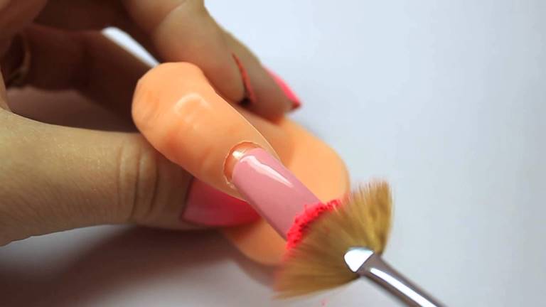 If you are more impressed with the method of decorating nails with a brush, then you have to do the following steps. To begin with, the nail needs to be completely covered with one of the colors you have chosen, and then you need to apply a different color to one of its parts (upper or lower). Until the coatings have had time to dry with a brush, it is necessary to shade the varnish border. Stylish manicure ready.