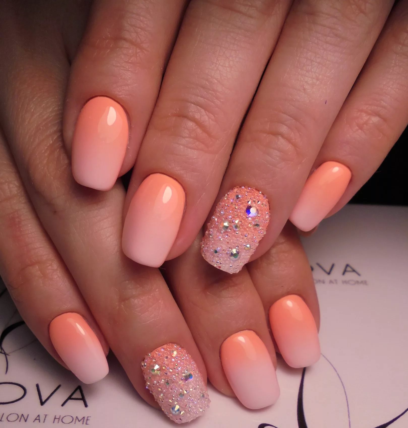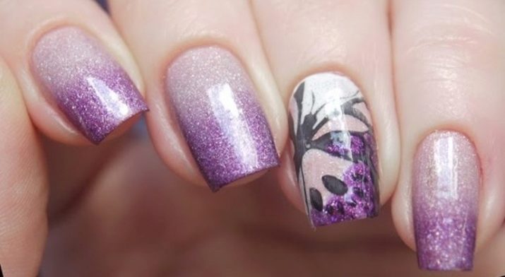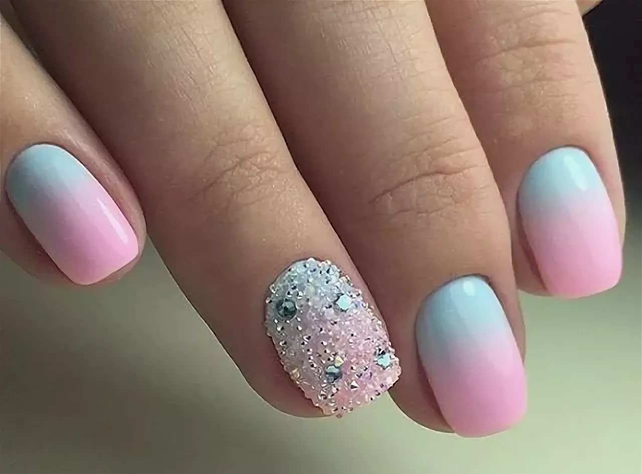 Gradient manicure, itself being a stylish way to design nails, goes well with glitter, which gives the image a greater brightness, as well as some solemnity and luxury.