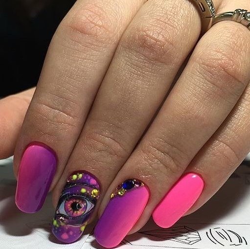 Today, the gradient on the nails - a modern and trendy design option. It allows you to combine different colors and shades. In addition, the masters of nail service went further and began to decorate the unusual manicure with sparkles, rhinestones and artificial crystals.