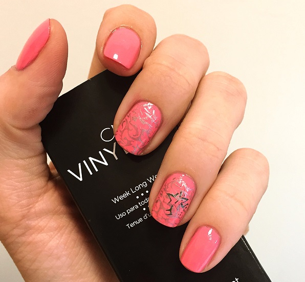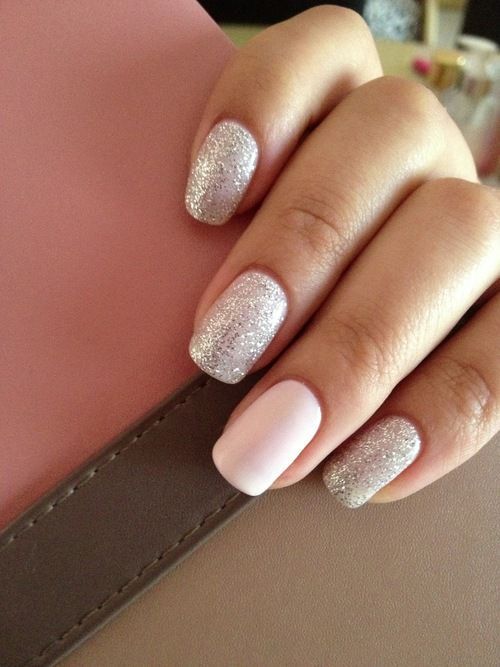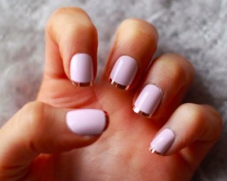 - Simple and elegant looks french with a metallic effect and pale pink base.