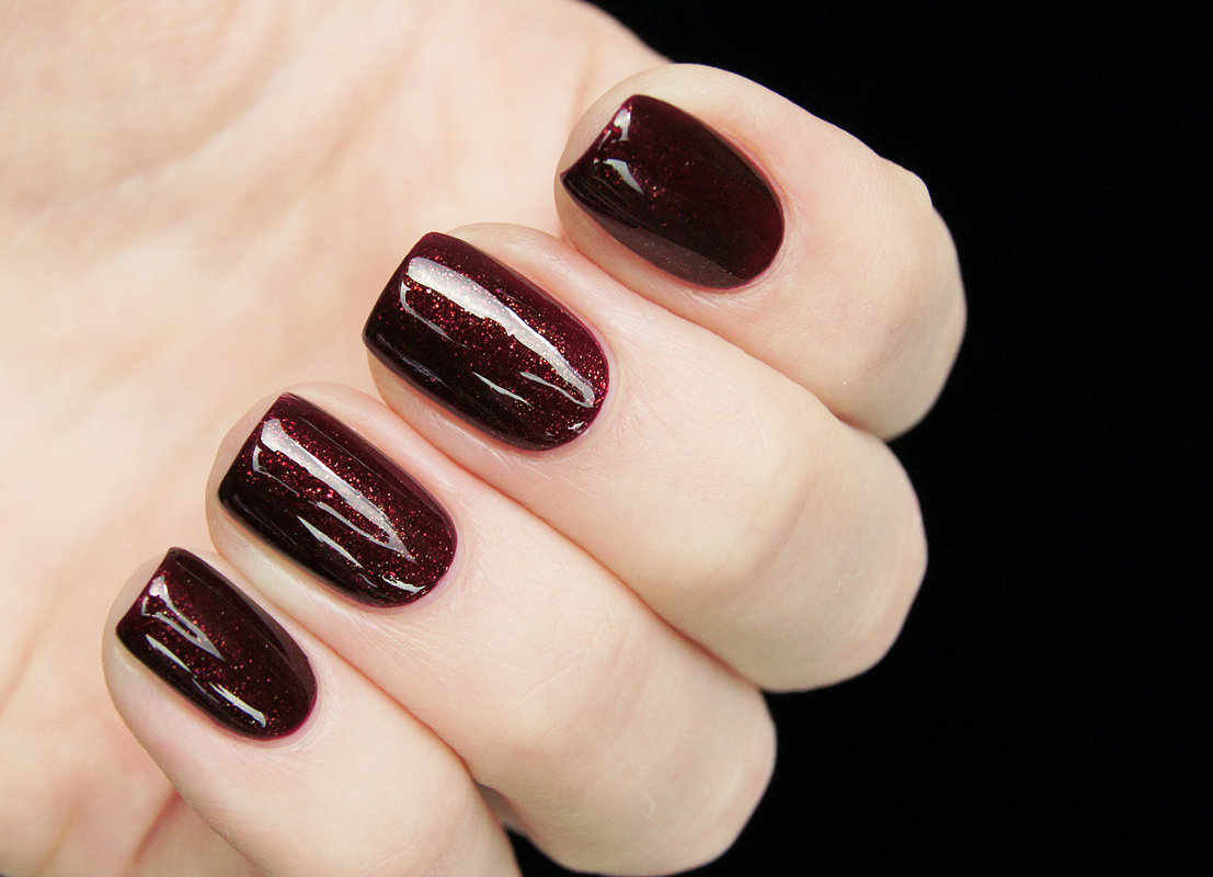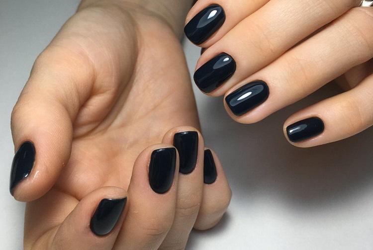 - Saturated colors of shellac. The coating is applied in 2 layers, while choosing dark tones, which will give the nails relief shapes and maximum expressiveness. It is in itself interesting, so there is no need to use additional elements of decor. Best of all, dark lacquer will look on short nails.