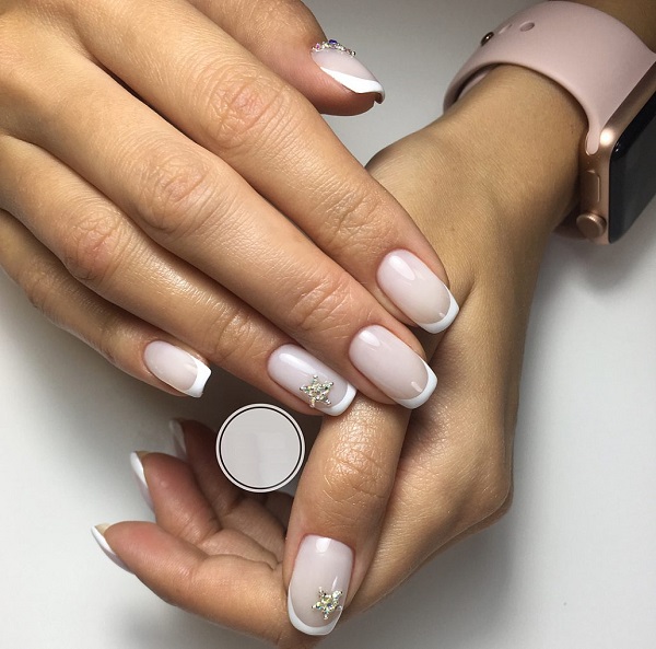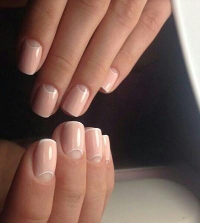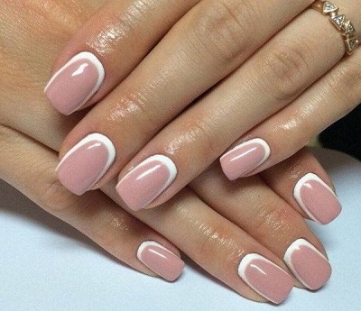 - French manicure. Such nail design is always in fashion. It can be made with a traditional white stripe or using multi-colored varnish.