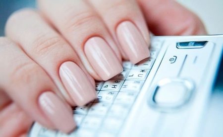- Design gel polish in nude tones. This coating will give your nails a healthy, well-groomed appearance, while retaining their naturalness. The most popular shades are: