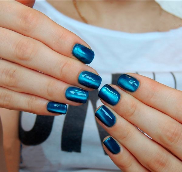 This type of manicure looks best in dark colors. One of the most appropriate colors emphasizing the merits of this style is blue and its light shades.