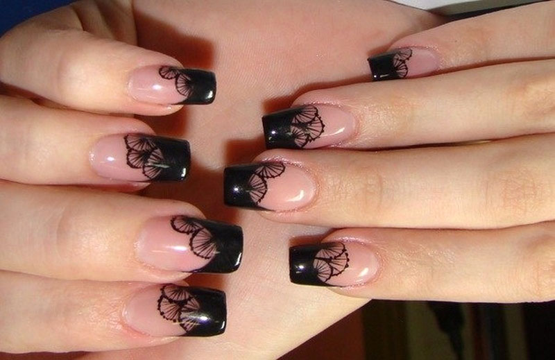 To give the image both tenderness and severity, stylists recommend replacing white edges with black. The result will be a bright and eccentric manicure. Since the black jacket in a special way attracts the attention of others and is distinguished by an unusual style, to create it requires the ideal shape of the nail plates.