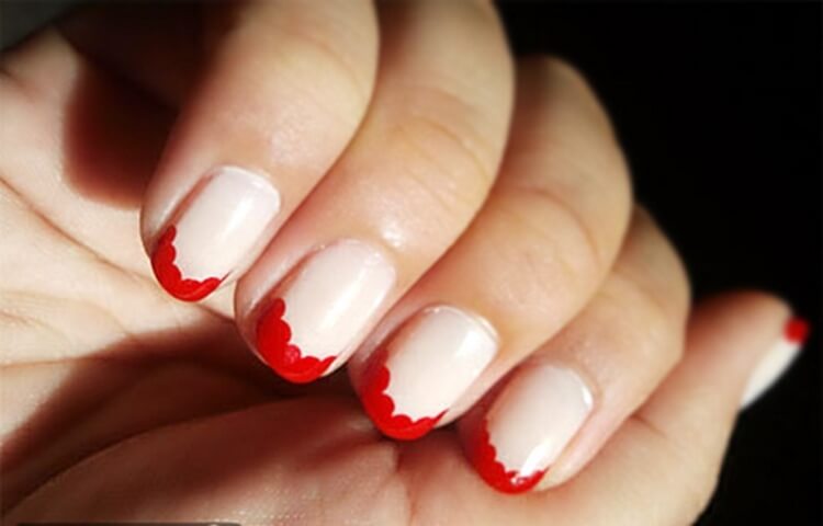 The most daring color jacket is red. It looks perfect on short nails, its solid scarlet background gives the image expressiveness and chic. Base contrast can be “adjusted” using different shades. It looks interesting such a French manicure, decorated with rhinestones and drawings. Moreover, if three-dimensional drawings are chosen for the composition, it is necessary to take into account the length of the nails. As for the shape, it is advisable to round off the red french plate, since on sharp ones it will get an “aggressive” look.