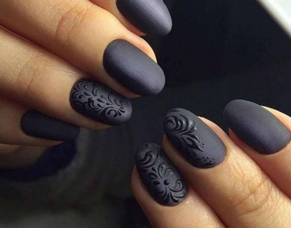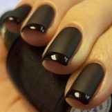 Matte manicure looks gorgeous in any images, it does not lose its relevance, inspires masters and forms the basis of stylish ideas. Matte texture looks especially gorgeous in dark shades. Even a classic manicure based on the same color with a velvet base will be gorgeous. In a business image there is always a place for sand manicure. True, it is necessary to limit oneself in the choice of colors, it is better to refuse bright ones.