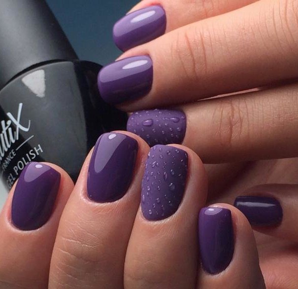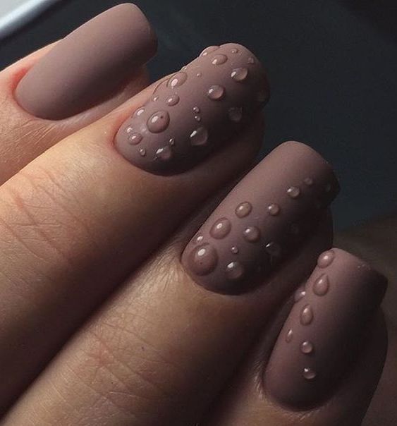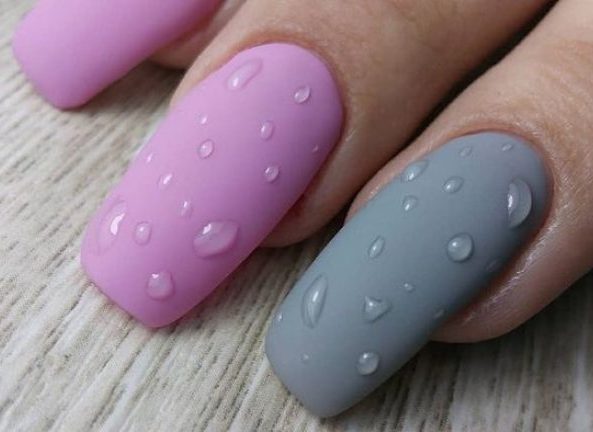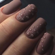 - On a matte background, glossy top drops are also a simple idea that looks differently depending on the choice of the primary color. From this design breathes freshness, light originality, which borders on elegance. For such a manicure there will definitely find time and mood.