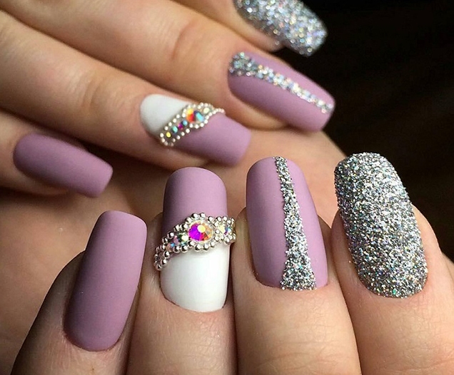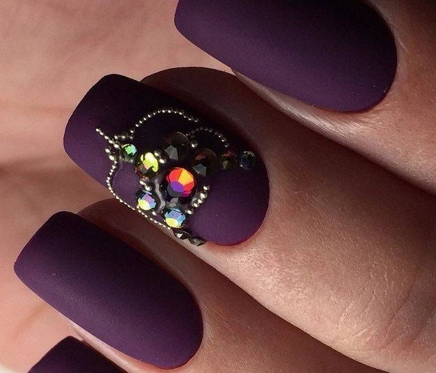 - On matte nails wonderfully transformed stones, rhinestones, sparkles, in one word - the whole brilliant decor.Chic, glitter, beauty - the only thing I want to say about such a manicure. Such nails attract attention from the first second, it is difficult to tear off a look from them, they want to enjoy and be proud.